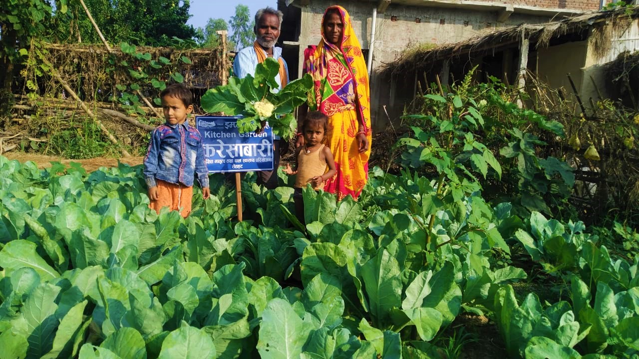 A proud farmer from a village with his IN supported home garden